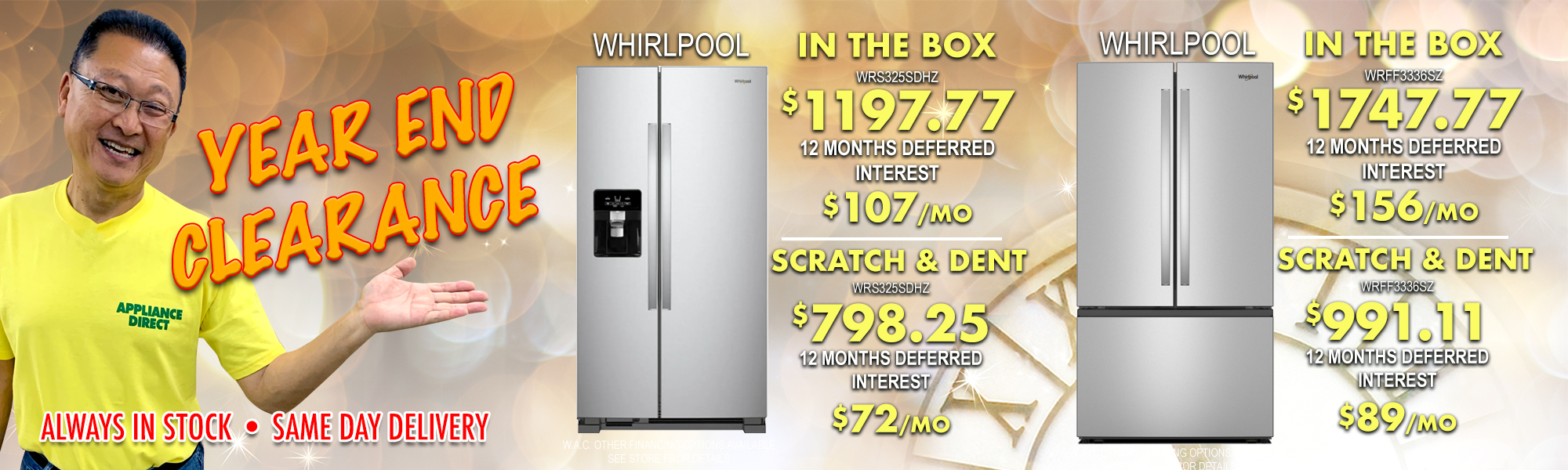 Sarah The team at Appliance Direct is 5 Star. Santos, Trace, and Guy all took care of me and got me my favorite refrigerator I have ever seen and set me up with a fantastic dishwasher as well. The fridge was half the price of the competition!