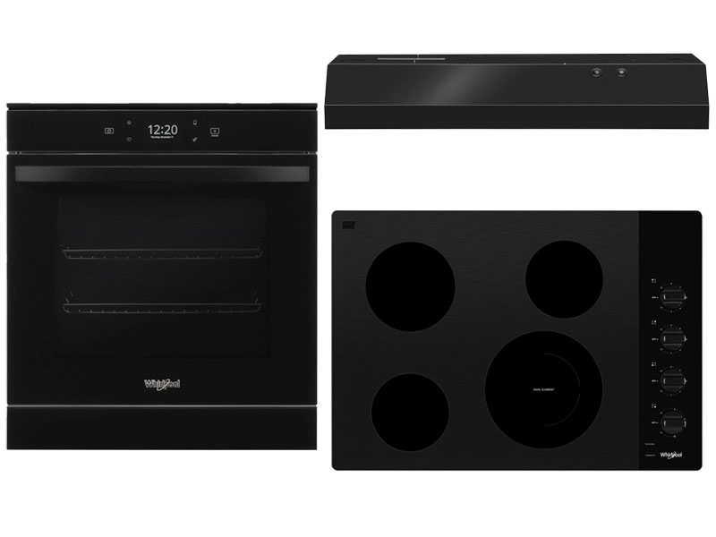 Whirlpool® 24" Black Single Electric Wall Oven, Whirlpool® 30" Black Electric Cooktop, Whirlpool® 30" Black Under Cabinet Range HoodRead More