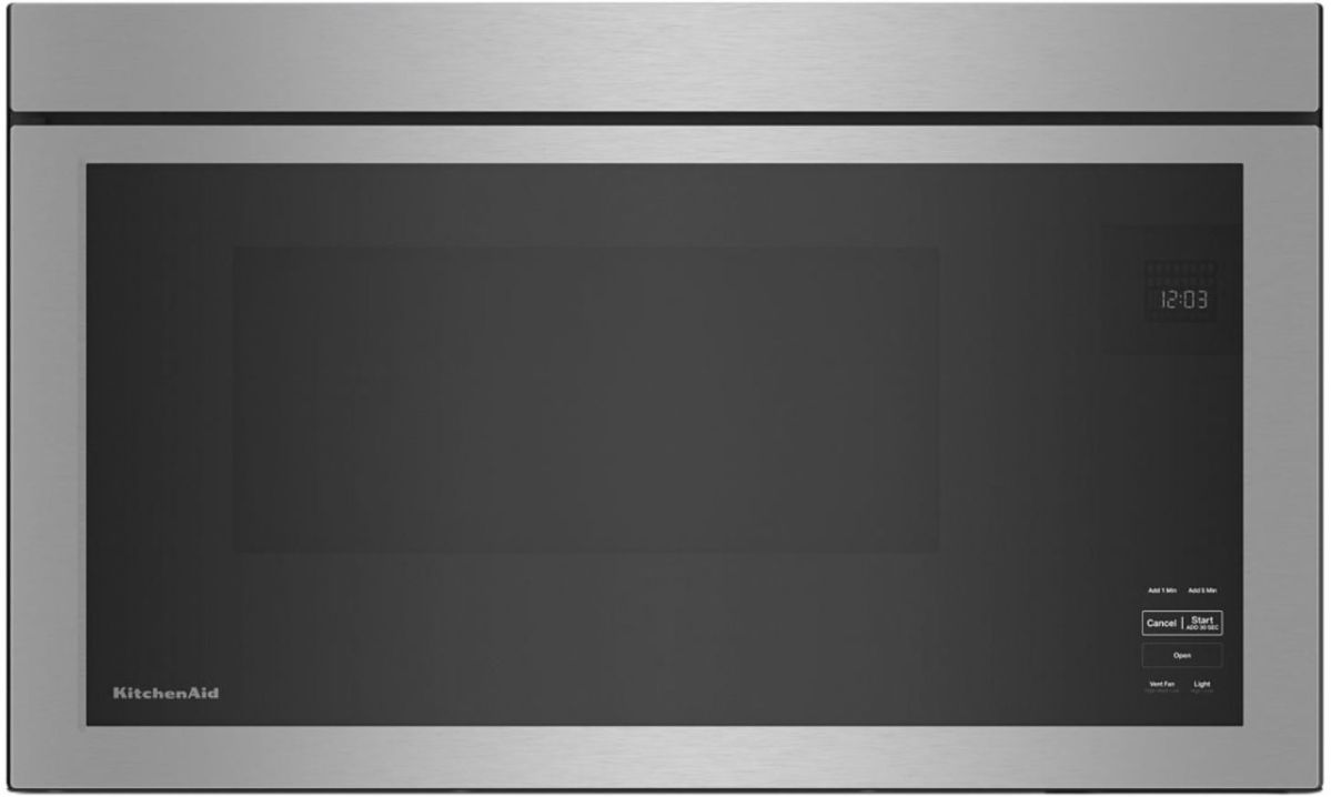 KitchenAid® Over-The-Range Microwave with Flush Built-In Design fits evenly with cabinets to give your kitchen a seamless look and feel, with a turntable-free interior that can heat multiple items at a time.**when installed in standard cabinet depth of 12 ¾”.Read More