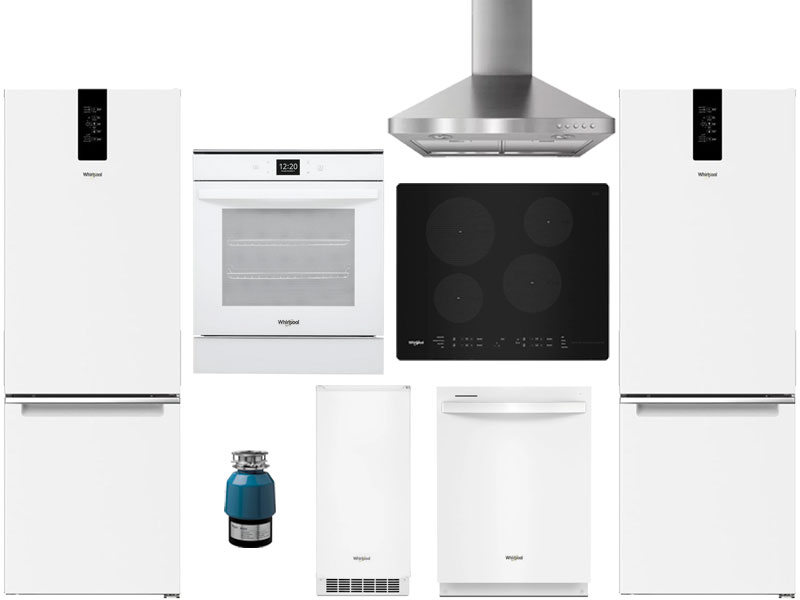 2 Whirlpool® 13.0 Cu. Ft. White Bottom Freezer Refrigerator, Whirlpool® 15" White Ice Maker, Whirlpool® 24" White Single Electric Wall Oven, Whirlpool® 24" Black Induction Cooktop, Whirlpool® 24" Wall-Mount Canopy Range Hood-Stainless Steel, Whirlpool® 24" White Built In Dishwasher, Whirlpool® 3/4 HP In-Sink Food Waste Disposer-BlackRead More