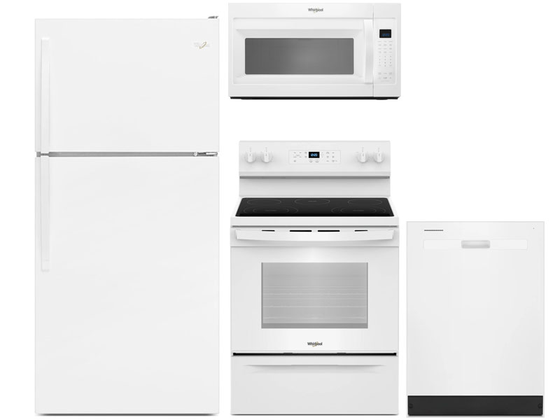 Whirlpool® 30 in. 18.3 Cu. Ft. White Top Freezer Refrigerator, Whirlpool® 30" White Freestanding Electric Range, Whirlpool® 24" White Built In Dishwasher, Whirlpool® 1.9 Cu. Ft. White Over The Range MicrowaveRead More