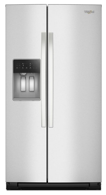 Whirlpool® 36 in. 20.9 Cu. Ft. Fingerprint Resistant Stainless Steel Counter Depth Side-by-Side Refrigerator features Door Ajar/Open Alarm, Exterior Dispenser, Control Lockout, Filtered Water, and a Factory Installed Icemaker.Read More